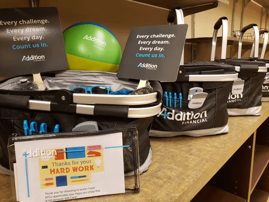 To thank teachers for their dedication, Addition Financial has donated gift baskets to four local school districts for Teacher Appreciation Week.