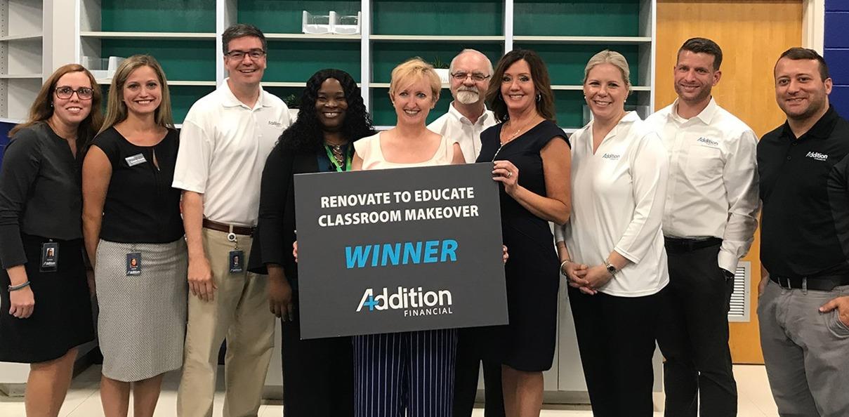 Addition Financial has awarded four lucky teachers with their dream classroom renovations. Through their fourth annual Renovate to Educate Contest, Addition Financial selected one public school teacher from Orange, Seminole, Lake and Osceola counties to receive a free classroom makeover.